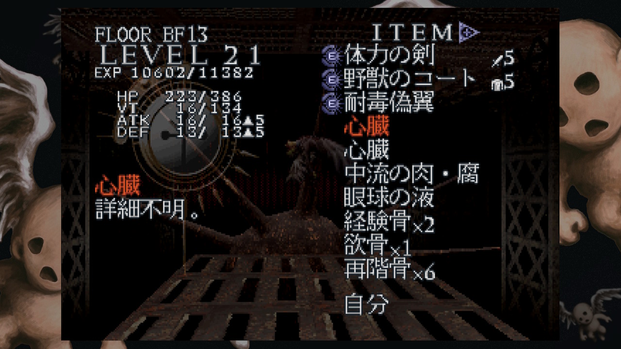 ちょっとだけ遊びました。Switch版はBF13に上級天使がいるんですね。他にグリロ、マジシャン、オル・ハガヌースがいました。きついわ。そして感覚球が1フロアに4つもあった。Switch版すごいわ。今までPlayStation版ばかりやってたのがよく分かりました。PlayStation版とSwitch(セガサターン)版の違いは難易度の違いだと思ってください。Switch版は高難易度。PS版は難易度が低いです。もうちょっとSwitch版頑張ろうかなあ。